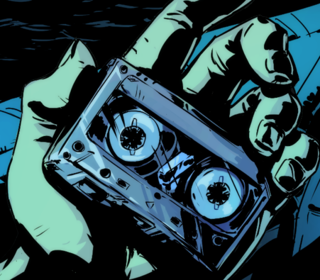 Once he and Veradux meet up with Doctor Herregods, Sonny remembers that he has it in his possession and tells the Doctor about it. Luckily, the Doctor mentions that he always carries his multi-platform music player with him, gets the tape, and attempts to play it on the device. The garbled sounds that come out of it reveal a microdata chip hidden inside, stuck on the ribbon. Herregods notifies them that they must get to his research facility so that he can analyze the chip.